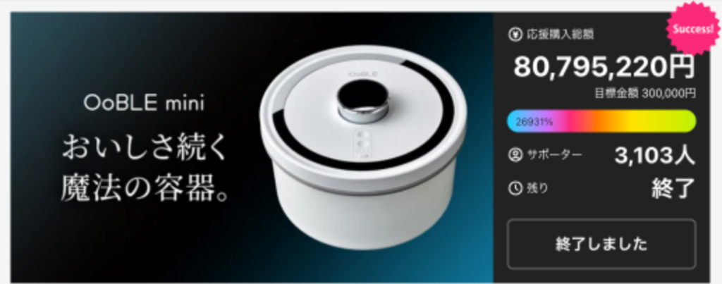 この度は、真空保存容器OoBLEを応援いただき、誠にありがとうございます。